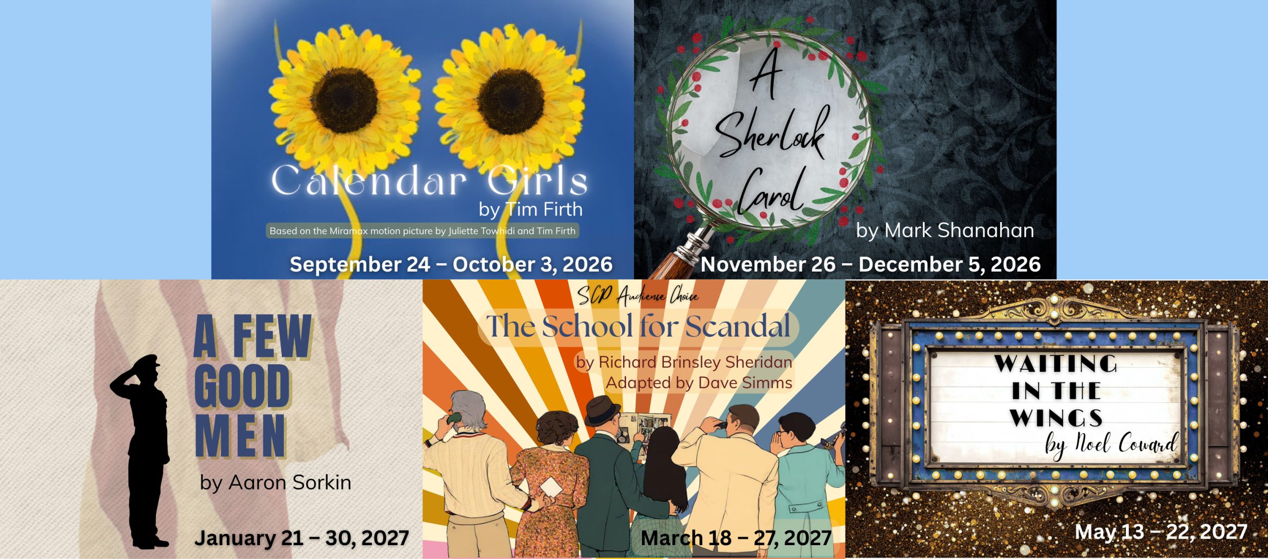 Agatha Christie Anton Chekhov Arthur Miller Bernard Slade Bertolt Brecht Charles Dickens Christopher Hampton Comedy Comedy Drama David French Drama Edward Albee Farce Ferenc Molnar Frederick Knott George Bernard Shaw Ian Taylor J.B. Priestley Jean-Claude van Itallie Jerome Lawrence John D. Ravold John Mortimer Ken Ludwig Kurt Weill Lillian Hellman Louisa May Alcott Marc Blitzstein Musical Mystery Neil Simon Noël Coward Pageant Reginald Rose Robert E. Lee Romantic Comedy Ronald Harwood Royce Ryton Sherman L. Sergel Sir Arthur Sullivan Tennessee Williams Terence Ratigan Thriller William Inge William Shakespeare Yasmina Reza